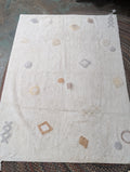 - Cotton rug with irregular geometric shapes and tassles on two corners