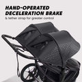 - The unique, hand-operated deceleration brake and handlebar tether strap keep you in control whether you need to head downhill or pick up the pace