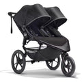The Baby Jogger® summit™ X3 Double Jogging Stroller outmaneuvers other jogging strollers on any terrain. And like you, this stroller/jogger hybrid is made to tackle more. air-filled rubber tires, all-wheel suspension, and a unique, hand-operated deceleration brake provide increased control and added safety as you hit the pavement, making you unstoppable. Its striking all-black design raises the bar on style and features reflective accents for better visability in the streets. This jogging stroller's front swivel wheel easily locks for jogging or running. The summit™ X3 Double sports padded near-flat reclining seats and vented seat tops to increase airflow when reclined. Large, adjustable sun canopies with mesh windows and mesh side vents, plenty of storage, one-action compact fold, and a rear parking brake complete the summit™ X3 Double Jogging Stroller. Customize your running stroller with the following available accessories (sold separately): Baby Jogger®/Graco® car seat adapters, and weather shield to protect from the elements. The summit™ X3 Jogging Stroller is designed to keep up with you as you hustle with 2.