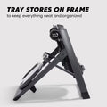 - Tray clips to the back of the high chair when folded, so there are no additional pieces to keep track of