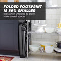 - Setup is easy with a two-step fold, meaning you can smoothly unfold to eat and fold to store
