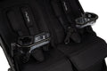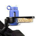 With the clip-on swivel trays attached to both sides of your TRVL dubl stroller, your little ones can store their snacks, drinks, and toys with ease.