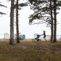 Thule Glide 3 is specifically made for running, thanks to its aerodynamic, lightweight design with large 18” rear wheels, fixed 16” front wheel, and room for your kick stride. You get speed with the fixed front wheel and feel safe knowing you can stop at any time with the integrated handbrake. Enjoy added space for long strides with the updated parking brake. Be confident knowing your child is comfortable with increased canopy coverage, enhanced ventilation, and a leg rest for longer runs. The new magnetic buckle ensures easy in and out, making safety a breeze.
