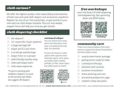 These free, small group sessions introduce a simplified, sustainable approach to preparing for your baby's arrival. Register now!