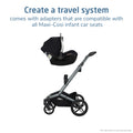 - Infant car seat compatible to create a travel system––comes with adapters that are compatible with all Maxi-Cosi infant car seats