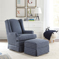 The Natasha swivel glider has some modern twists to a traditional classic. Sleek lines and elegant seams give it a sophisticated look as well. Best Chairs Storytime Series provides nearly a hundred different fabric options to choose from, so find the upholstery that best suits your tastes and the atmosphere of your nursery. With kiln-dried hardwood-frame parts, reinforced joints, expert Indiana craftsmen and reversible seat cushions, the Natasha glider will last as it is passed down from generation to generation. (Ottoman sold separately.)